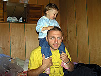 | | Jurek z córkami | | Zdjęcie z 3 maja br., więc dość świeże... (ta malutka biała kropka w tle to 2-ga pociecha Jurków) |